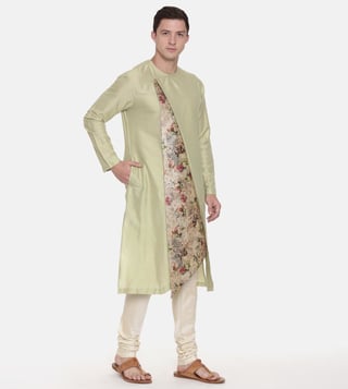 Stand out from the crowd with this perfect kurta set. This kurta set includes a printed kurta with captivating embroidery detail. Paired with chudidar, it will complete the look. It has been crafted with care using silk cotton chanderi for a smooth touch on the skin. Disclaimer: Product colour may slightly vary due to photographic lighting sources. Country Of Origin - India.
