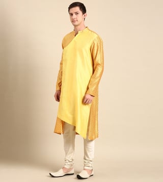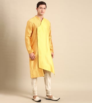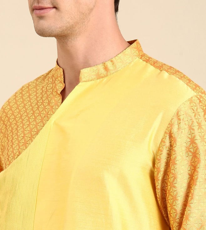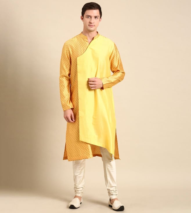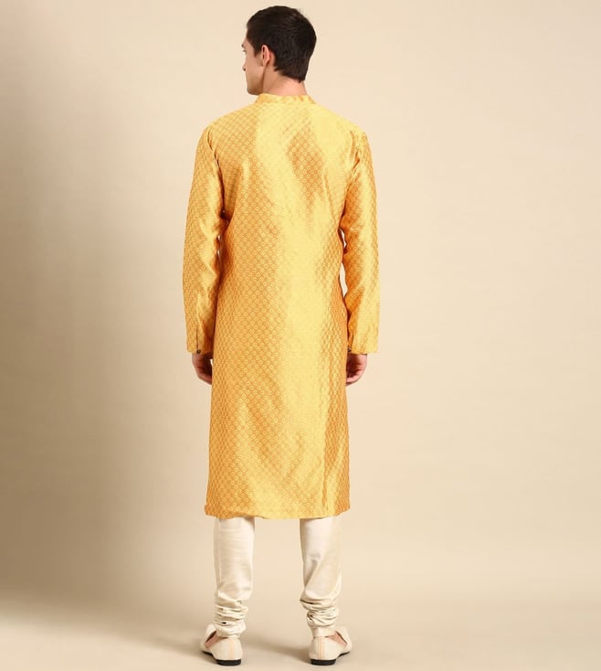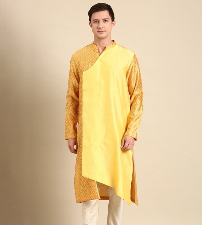 Mayank Modi Yellow Silk Jaquard Kurta With Pant