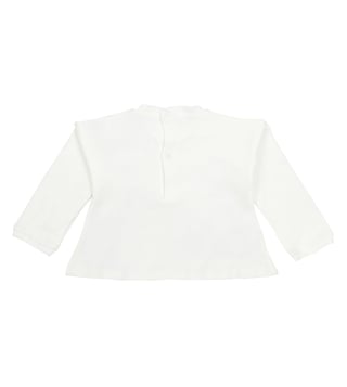 Adorn your little one in style with this chic-sleeved tracksuit. It features a convenient snap button fastening on the back for easy dressing. Crafted from breathable fabric, this garment showcases a trendy design on the front, combining comfort and fashion for your little trendsetter.