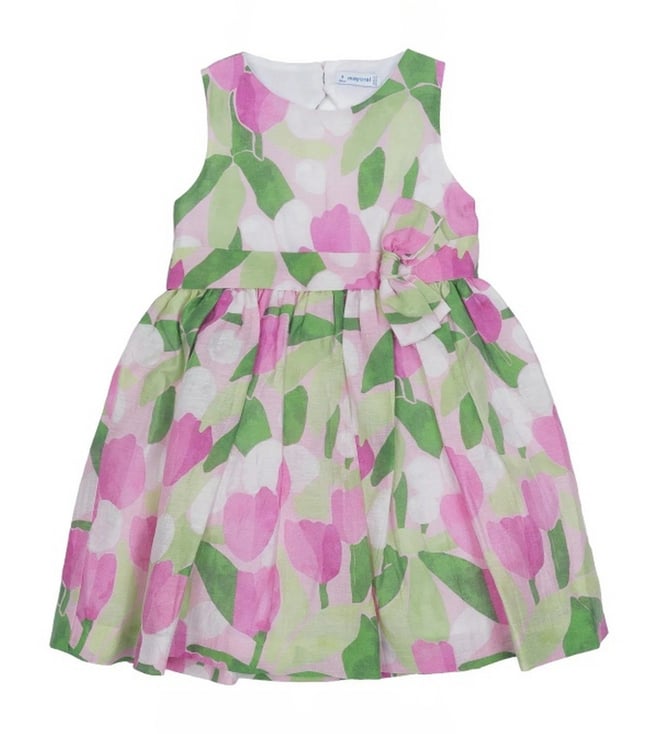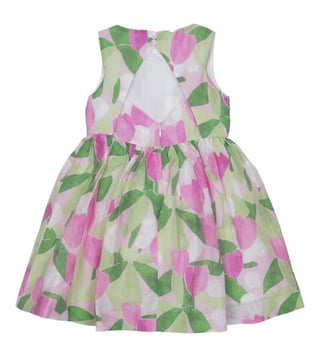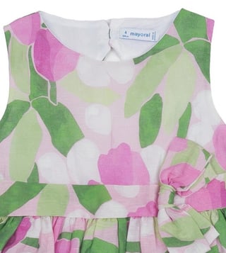 Delicate floral sleeveless dress for girls. Crafted from luxurious linen-blend, this piece features a charming, vibrant print. Perfect for a touch of timeless elegance and playful style.