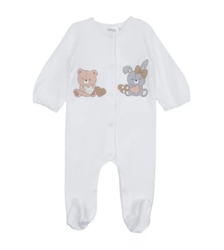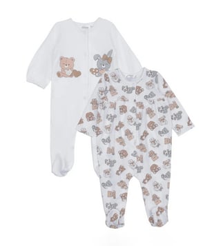 This adorable 2-piece footie set features a charming teddy print, perfect for little girls. Crafted from luxuriously soft 95% cotton with a touch of elastane, it offers ultimate comfort and style. A delightful addition to any wardrobe.