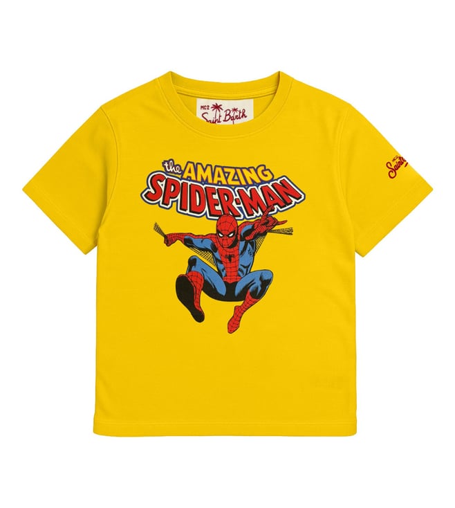 Boys Yellow Spider Man Logo Print Fitted T-Shirt