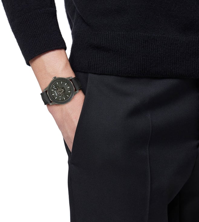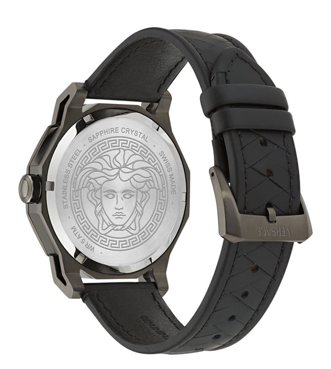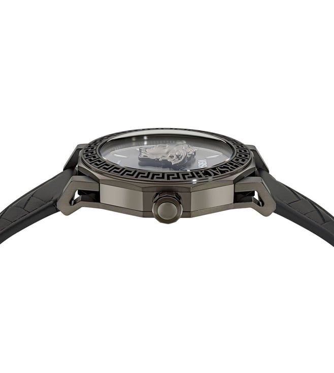 A captivating design that blends artistry with heritage. The statement case frames a guilloche dial, where the three-dimensional Medusa takes center stage, embodying elegance and allure. The top ring, adorned with the iconic Greca motif, adds a touch of refinement and reinforces its strong connection to Versace's timeless DNA.