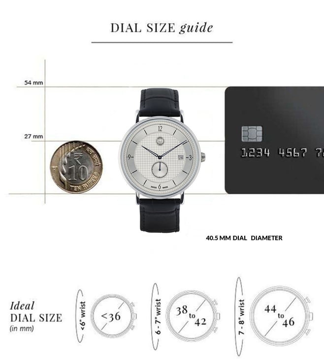 Exceptional craftsmanship meets refined design in this timepiece, featuring a stainless steel case. A convex mineral crystal with anti-reflective coating on both sides ensures a clear view of the intricately embossed dials, accentuated by the historic crown at 12 o'clock. The blue-treated Super-LumiNova needles enhance readability in low light. With a 40.5 mm dial diameter, 20 mm bracelet width, and 22 mm lugs, this watch includes a date display at 3 o'clock and a satellite seconds dial at 6 o'clock, powered by a Ronda 1019 quartz movement. It has a 50 m water resistance.