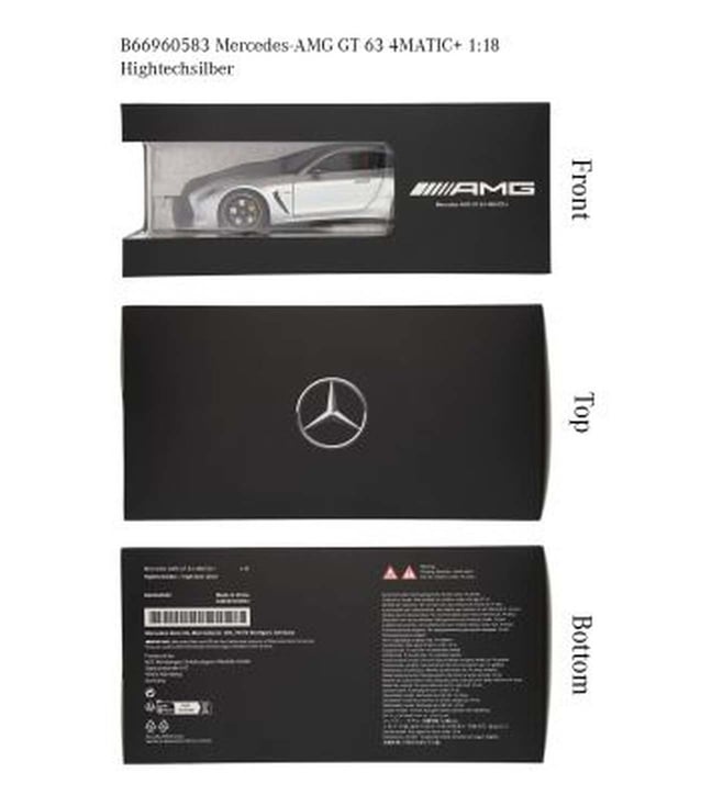 From the panoramic roof to the AMG Performance seats to the 53.3 cm (21-inch) AMG forged wheels in cross-spoke design, the miniature model of the Mercedes-AMG GT 63 4MATIC+ Coupe C192 was created using the CAD data of the original for maximum attention to detail and it complements any collection perfectly. For example, the miniature model in die-cast zinc with plastic parts consists of more than 174 individual parts that are precisely assembled by hand.