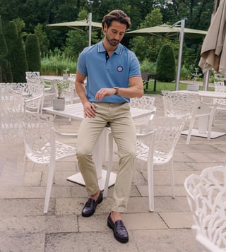 The Men'S Polo Shirt Combines The Best In Wear Comfort With A Sporty, Casual Design, Making It The Ideal Choice For Everyday Wear. In Addition To Single-Rib Polo Neck And Cuffs With A Sophisticated Rib-Knitted Pattern, The Shirt Also Features A Forward Shoulder Yoke With Topstitching, A Neck Band And Side Slits. A Blue Button Band With Branded 4-Hole Buttons As Well As A Woven And Embroidered Badge With The Vintage Star On The Chest Area Round Off The Design Of The Modern-Fit Shirt Perfectly.
