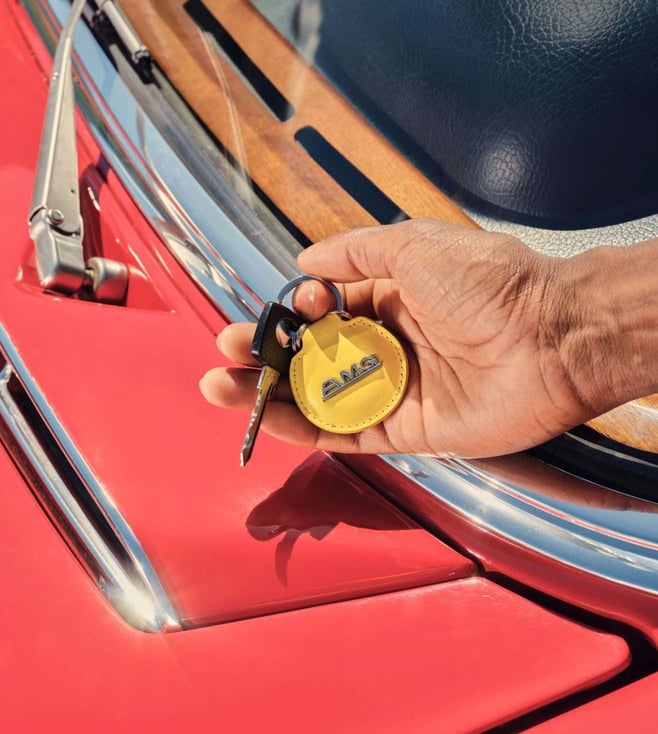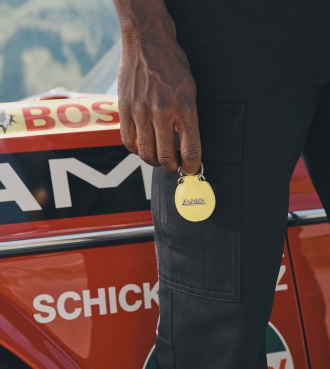 Front door, car, letterbox - with the AMG Classic keychain, all keys are always to hand. This is ensured by a split ring with three additional mini split rings that allow the keys to be changed and removed quickly. And the yellow leather pendant also sets visual highlights. In addition to a stainless steel AMG diamond logo on the front of the key fob, the leather is also decorated with a raised embossed AMG Affalterbach logo on the back. Material : Stainless steel/Leather