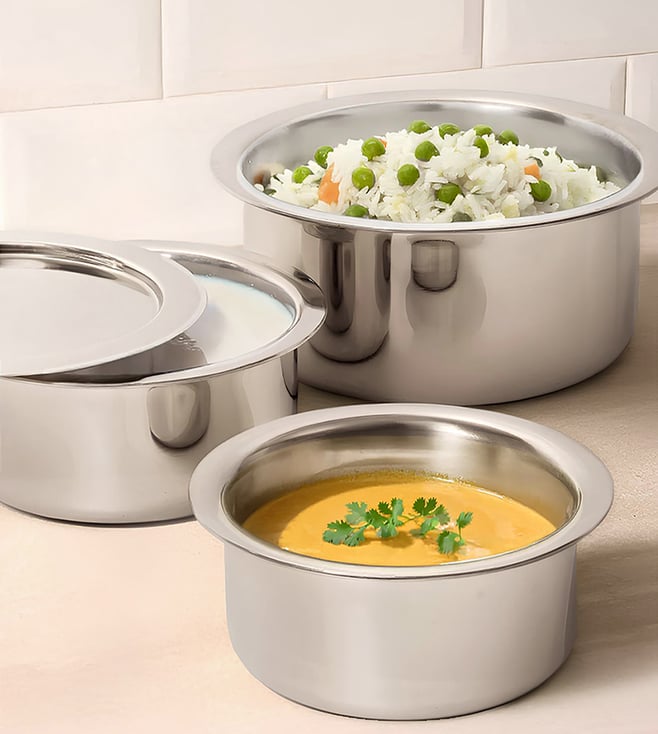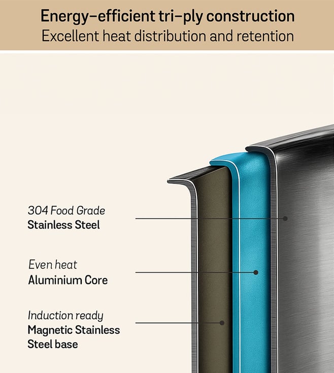 Triple-layer (Tri-ply) Construction : Combines food-grade 304 stainless steel with a thick aluminum core for even heating and exceptional durability.Versatile Compatibility: Perfect for induction, gas, electric, and ceramic cooktops.Safe & Healthy: Made with 100% food-grade stainless steel that is non-toxic and non-reactive.Comfortable Handle: Designed for an easy, secure grip, making cooking effortless.Even Heat Distribution: Thick aluminum base prevents hotspots, ensuring consistent cooking results.Durable Lid: Comes with a thick lid to lock in moisture and flavors for better cooking.