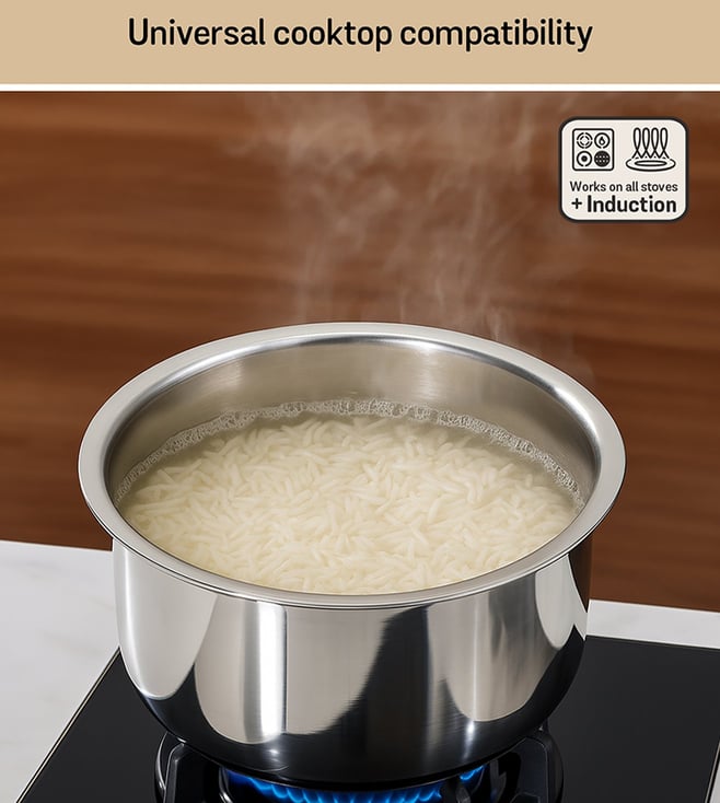 Triple-layer (Tri-ply) Construction : Combines food-grade 304 stainless steel with a thick aluminum core for even heating and exceptional durability.Versatile Compatibility: Perfect for induction, gas, electric, and ceramic cooktops.Safe & Healthy: Made with 100% food-grade stainless steel that is non-toxic and non-reactive.Comfortable Handle: Designed for an easy, secure grip, making cooking effortless.Even Heat Distribution: Thick aluminum base prevents hotspots, ensuring consistent cooking results.Durable Lid: Comes with a thick lid to lock in moisture and flavors for better cooking.