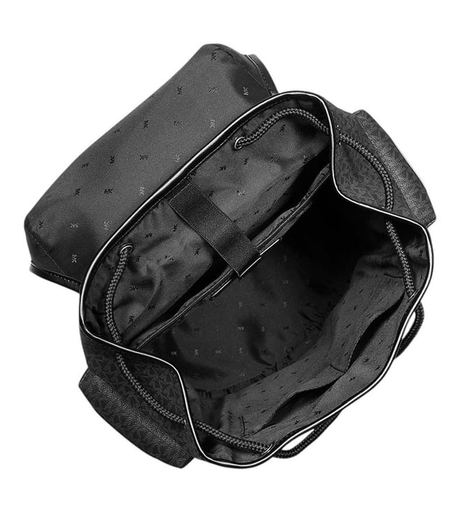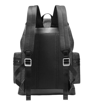 Michael Kors black cooper large backpack crafted in coated canvas and polyester featuring buckle closure, 1 compartment, inside 2 slip pockets, tablet compartment, outside zip pockets, metal logo, top handle with adjustable backpack straps. Products purchased from Darveys are supported exclusively by the warranty/exchange policies of Darveys and its partner boutiques. Brand owners and their channel partners are not responsible for exchange/warranty services for items purchased through Darveys.