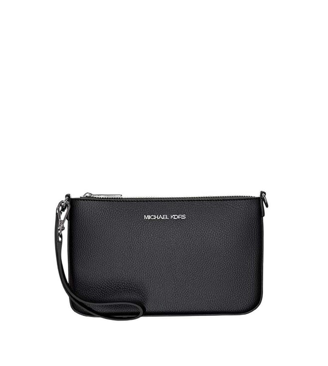 Accessorize perfectly with this black jet set logo textured wristlet by Michael Kors crafted in leather featuring zip closure, slip pocket and logo detailing to give you luxe appeal. Dimensions: 20.95 x 13.33 x 1.9 cm. Products purchased from Darveys are supported exclusively by the warranty/exchange policies of Darveys and its partner boutiques. Brand owners and their channel partners are not responsible for exchange/warranty services for items purchased through Darveys.