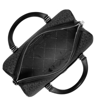 Michael Kors Black Jet Set Medium Duffle Bag crafted in coated canvas and polyester featuring zip closure, 1 compartment, inside slip pocket, outside front slip pocket, front logo, dual carry handles with removable adjustable shoulder strap. Products purchased from Darveys are supported exclusively by the warranty/exchange policies of Darveys and its partner boutiques. Brand owners and their channel partners are not responsible for exchange/warranty services for items purchased through Darveys.