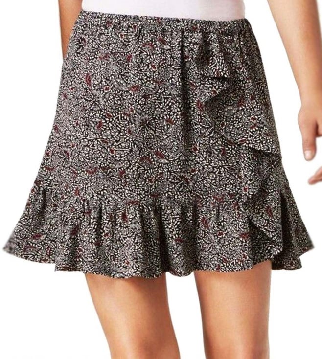 Adorn the modern look with this black maroon printed ruffled mini skirt from Michael Kors crafted in polyester/elastane featuring elasticated waistband, all-over print, pull-on styling, ruffled, mini length. Products purchased from Darveys are supported exclusively by the warranty/exchange policies of Darveys and its partner boutiques. Brand owners and their channel partners are not responsible for exchange/warranty services for items purchased through Darveys.
