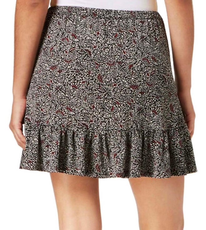 Michael Kors Black Maroon Printed Ruffled Mini Regular Fit Skirt