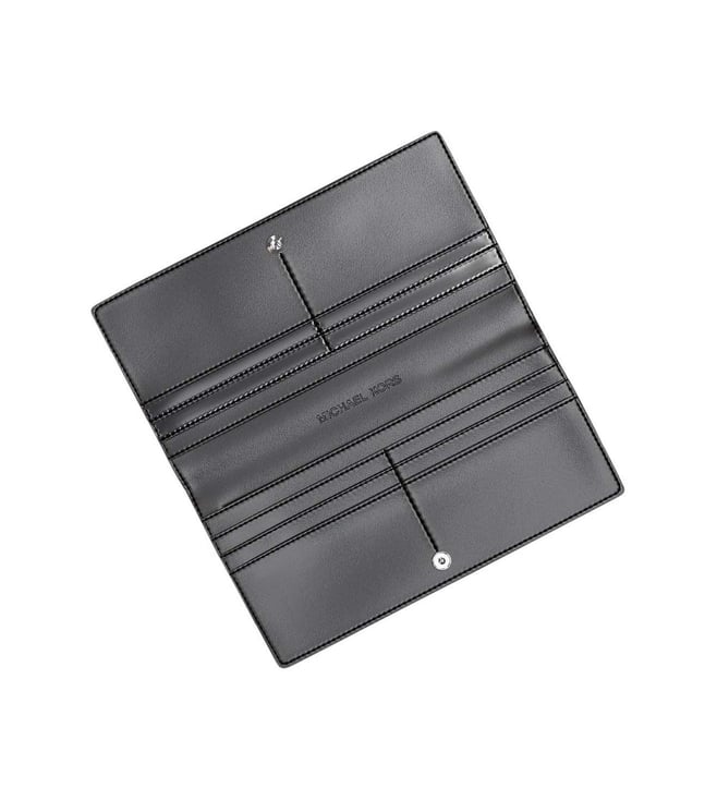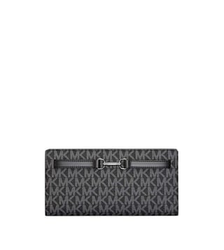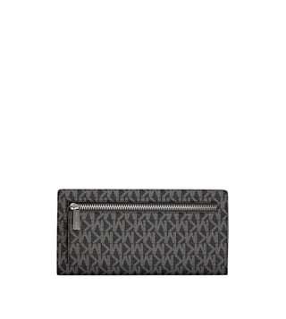 Accessorize perfectly with this black signature logo wallet by Michael Kors crafted in coated canvas, polyester and polyurethane featuring snap closure, slip pockets, 12 card slots, zip pocket and logo detailing to give you luxe appeal. Products purchased from Darveys are supported exclusively by the warranty/exchange policies of Darveys and its partner boutiques. Brand owners and their channel partners are not responsible for exchange/warranty services for items purchased through Darveys.
