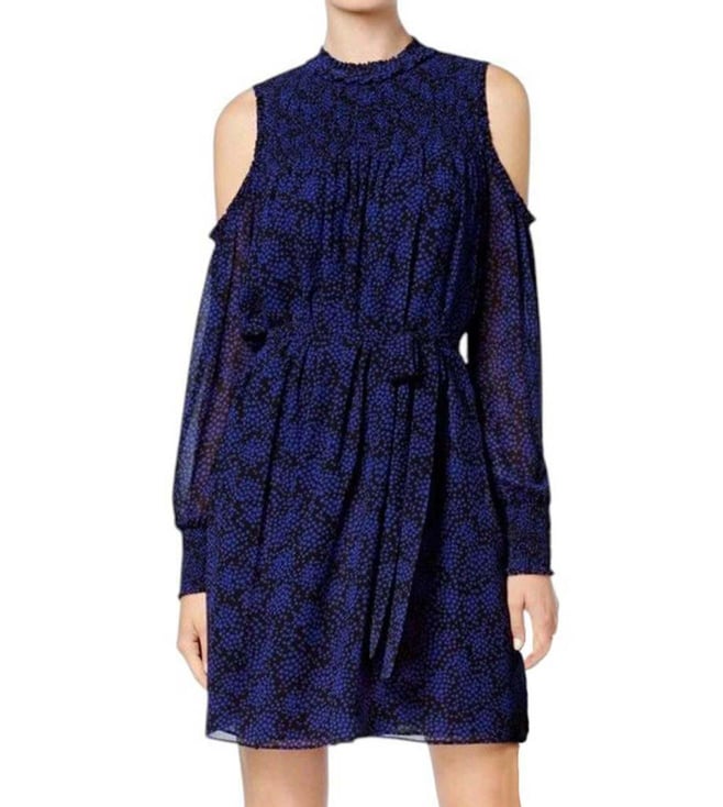 Michael Kors Blue Cold-Shoulder Printed Dress
