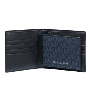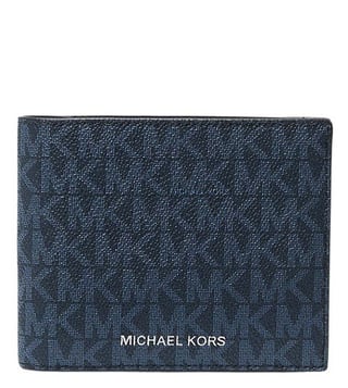 Accessorize perfectly with this blue signature wallet by Michael Kors crafted in coated canvas, polyurethane and polyester featuring bill compartment, card slots, removable id window and logo detailing to give you luxe appeal. Products purchased from Darveys are supported exclusively by the warranty/exchange policies of Darveys and its partner boutiques. Brand owners and their channel partners are not responsible for exchange/warranty services for items purchased through Darveys.