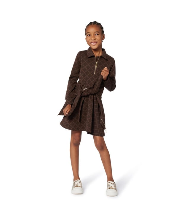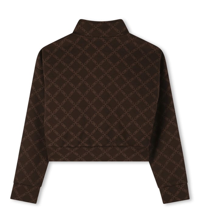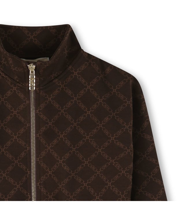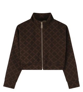 Elevate your wardrobe with the Michael Kors Brown Cardigan. This luxurious double jersey cardigan features an all-over MK empire print, adding a touch of sophistication to any outfit. The branded zip fastening on the front and pockets on the sides provide both style and functionality. Made from a blend of polyester, viscose, and elastane, this cardigan offers comfort and versatility. Stay cozy and chic with this must-have piece from Michael Kors.