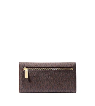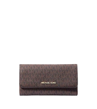 Accessorize perfectly with this brown jet set trifold logo wallet by Michael Kors crafted in coated canvas, polyester, polyurethane featuring snap closure, credit card slots, back zipper pocket, 3 back and front pockets, 2 center pockets, 9 card slots and logo detailing to give you a luxe appeal. Dimension: 18.41 x 10.16 x 2.54 cm. Products purchased from Darveys are supported exclusively by the warranty/exchange policies of Darveys and its partner boutiques. Brand owners and their channel partners are not responsible for exchange/warranty services for items purchased through Darveys.