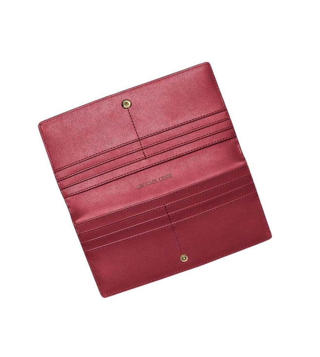 Accessorize perfectly with this cherry logo textured wallet by Michael Kors crafted in polyurethane, cotton, polyester featuring snap closure, slip pockets, 12 card slots, back zip pocket and logo detailing to give you luxe appeal. Dimensions: 19.05 x 10.16 x 1.9 cm. Products purchased from Darveys are supported exclusively by the warranty/exchange policies of Darveys and its partner boutiques. Brand owners and their channel partners are not responsible for exchange/warranty services for items purchased through Darveys.