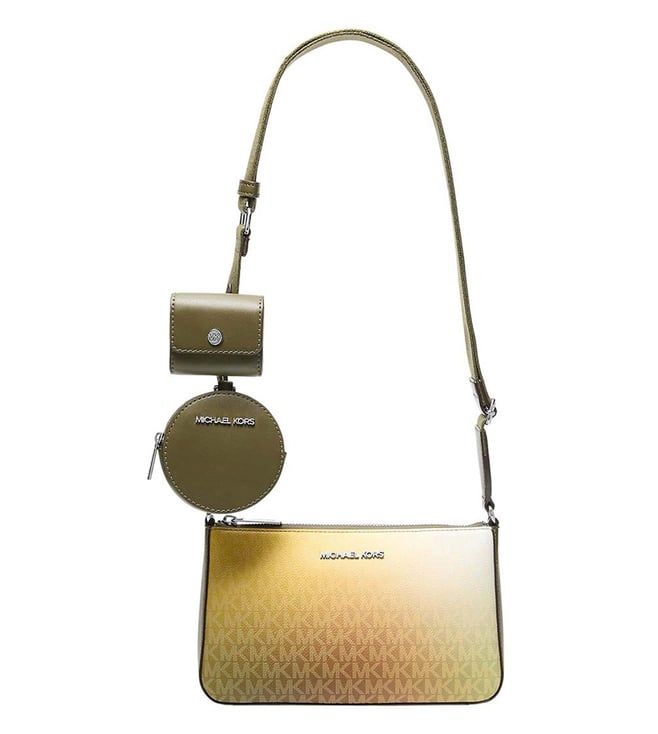 Michael Kors combined olive jet set ombre small crossbody bag crafted in coated canvas and polyester featuring zip closure, 1 compartment, inside slip pocket, metal logo, adjustable crossbody strap.