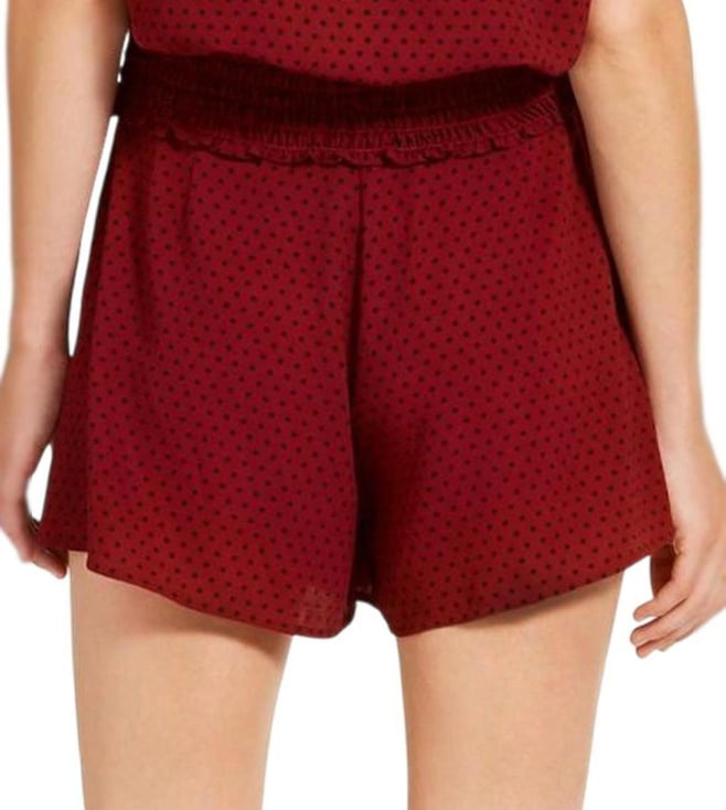Adorn the modern look with this dark brandy tie-waist pleated shorts from Michael Kors crafted in polyester/elastane featuring tie waist, all-over polka dot pattern, pleated.