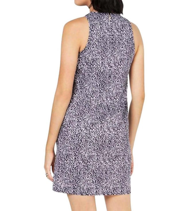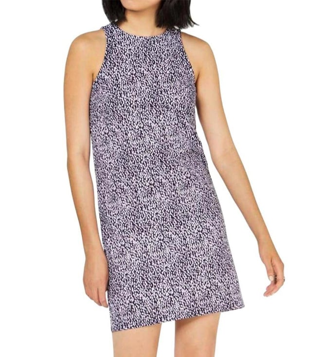 Adorn the modern look with this dark lavender printed sleeveless dress from Michael Kors crafted in polyester/elastane featuring crewneck, sleeveless, all-over print, mini length.