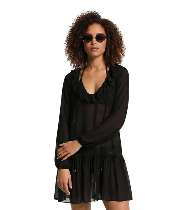 Black Ruffled Sequined Asymmetrical Dress