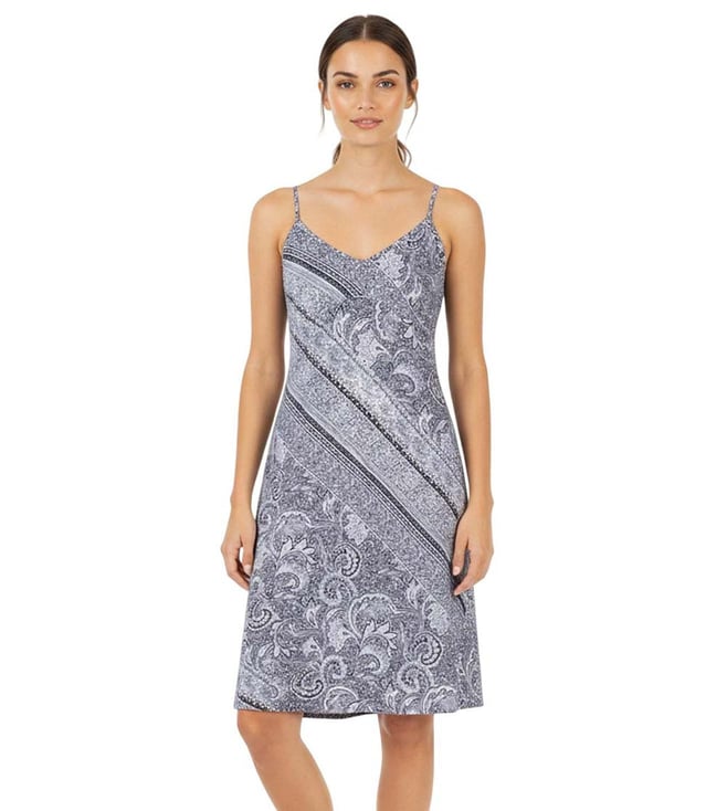 Navy Blue Printed Sleeveless Sweater Dress