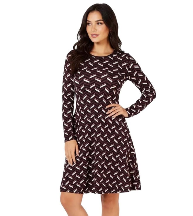 Cordovan V-Neck Printed Flare Dress