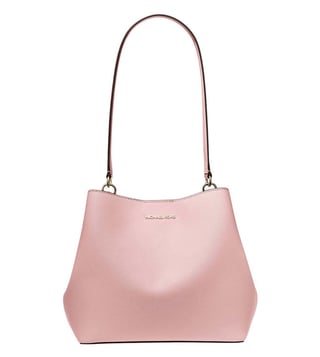 Michael Kors pink pratt medium shoulder bag crafted in leather featuring snap closure, 2 compartments, middle zip pocket, front logo, single carry handle. Products purchased from Darveys are supported exclusively by the warranty/exchange policies of Darveys and its partner boutiques. Brand owners and their channel partners are not responsible for exchange/warranty services for items purchased through Darveys.