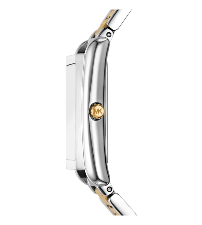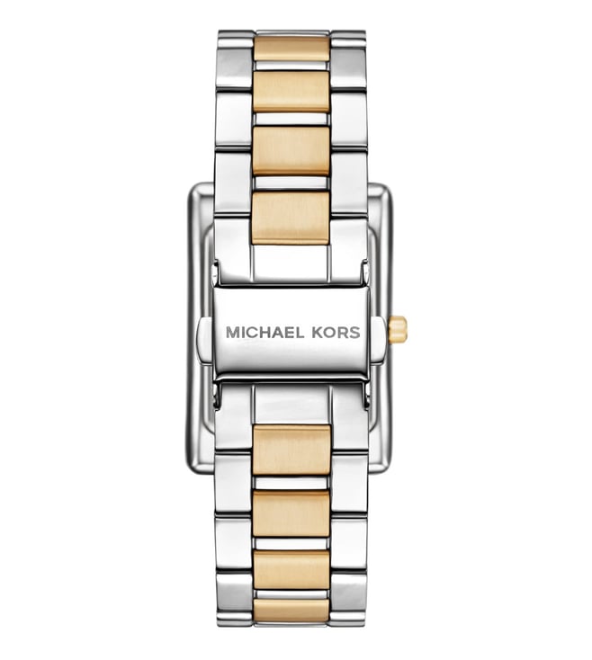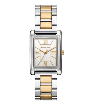 Elevate your everyday look with the Michael Kors Essex Quartz Womens Watch. This stunning timepiece exudes sporty elegance with its rectangular two-tone case and classic Roman numerals on the matching dial. Perfect for those who appreciate timeless charm, this watch effortlessly combines style and functionality. Add a touch of sophistication to your wardrobe with the MK4967 Essex watch and make a statement wherever you go.
