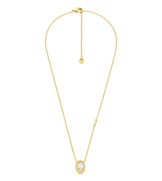 Complete your ensemble with the exquisite charm of our Kors Brilliance collection, a true testament to understated luxury. This stunning pendant necklace features a clear oval cut cubic zirconia stone set in a modern bezel. This necklace is secured with a spring ring closure making it suitable for everyday wear.