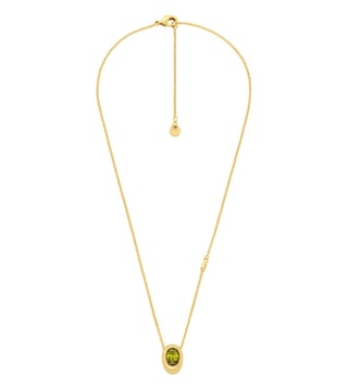 Complete your ensemble with the exquisite charm of our Kors Brilliance collection, a true testament to understated luxury. This stunning pendant necklace features a peridot oval cut cubic zirconia stone set in a modern bezel. This necklace is secured with a spring ring closure making it suitable for everyday wear.