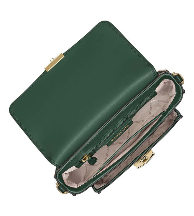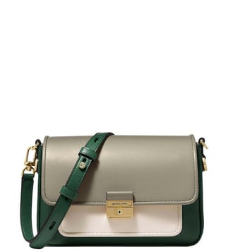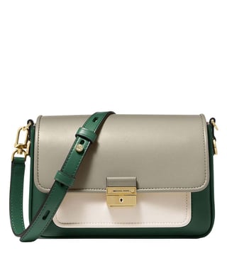 Michael Kors Green Bradshaw Color Block Leather Medium Cross Body Bag