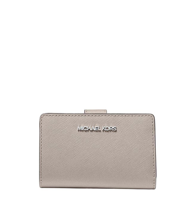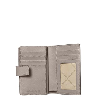Accessorize perfectly with this grey logo wallet by Michael Kors crafted in leather featuring snap closure, zip pocket, 3 slip pockets, 6 card slots, id window and logo detailing to give you a luxe appeal. Products purchased from Darveys are supported exclusively by the warranty/exchange policies of Darveys and its partner boutiques. Brand owners and their channel partners are not responsible for exchange/warranty services for items purchased through Darveys.