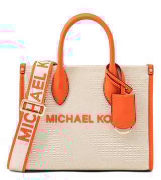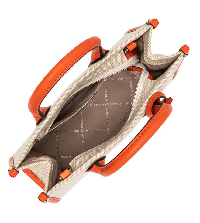 Michael Kors grey mirella small satchel crafted in leather featuring zip closure, 1 compartment, interior slip pocket, front logo, dual carry handles, adjustable & removable satchel strap.