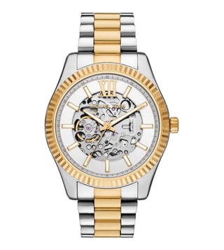 Bold and contemporary, this Lexington Automatic in two-tone stainless steel is elevated with a crisp white skeleton dial for a dynamic pairing. Its self-winding movement is powered by the motion of the wearer, blending modern edge with traditional watchmaking in a design that commands attention.