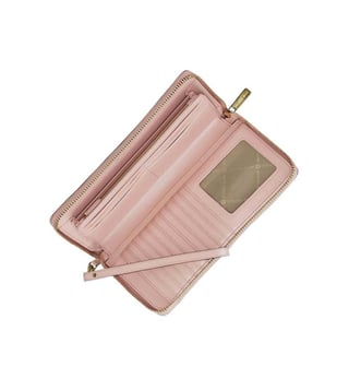 Accessorize perfectly with this light pink jet set signature wristlet by Michael Kors crafted in coated canvas, polyester, polyurethane featuring zip closure, id window, 2 slip pockets, zip pocket, 15 card slots, wrist strap, and logo detailing to give you a luxe appeal. Products purchased from Darveys are supported exclusively by the warranty/exchange policies of Darveys and its partner boutiques. Brand owners and their channel partners are not responsible for exchange/warranty services for items purchased through Darveys.