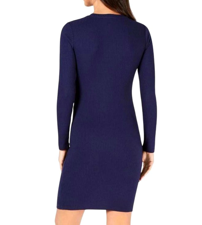 Michael Kors Navy Blue Crewneck Twisted Ribbed Dress