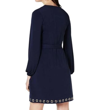 Amp up your wardrobe with this navy blue wrap dress,from Michael Kors crafted in polyester featuring long sleeves, v-neck, belt and pullover style.