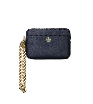 Accessorize perfectly with this navy blue logo textured chain card holder by Michael Kors crafted in leather featuring zip closure, card slot, ID window, front slip pocket and logo detailing to give you a luxe appeal. Products purchased from Darveys are supported exclusively by the warranty/exchange policies of Darveys and its partner boutiques. Brand owners and their channel partners are not responsible for exchange/warranty services for items purchased through Darveys.
