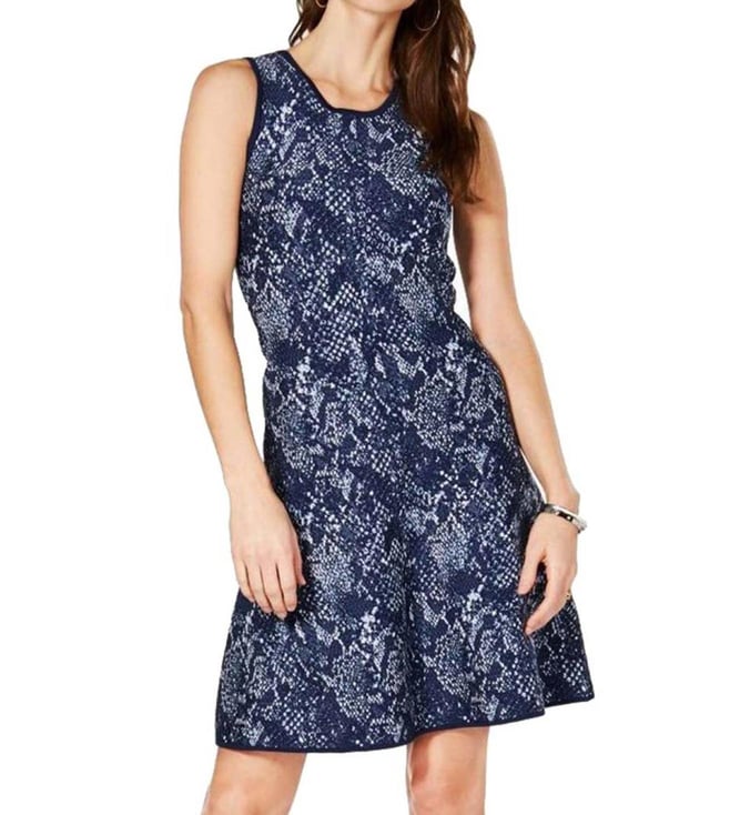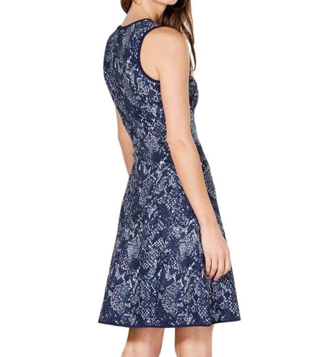 Michael Kors Navy Blue Printed Sleeveless Sweater Dress