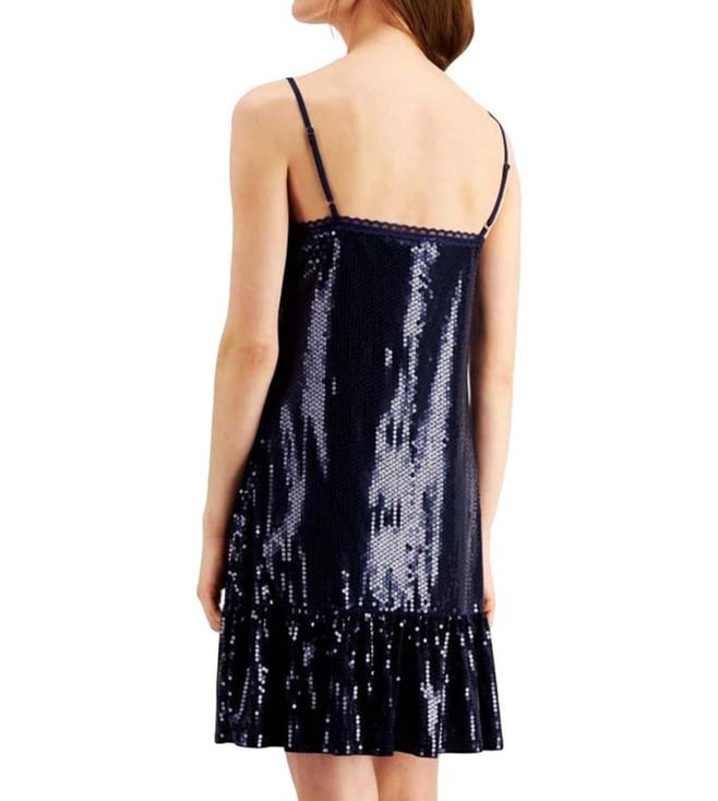 Michael Kors Navy Blue Sequined Flounce-Hem Slip Dress