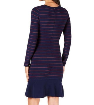 Michael Kors Navy Blue Striped Ruffled Sweater Dress
