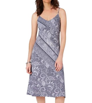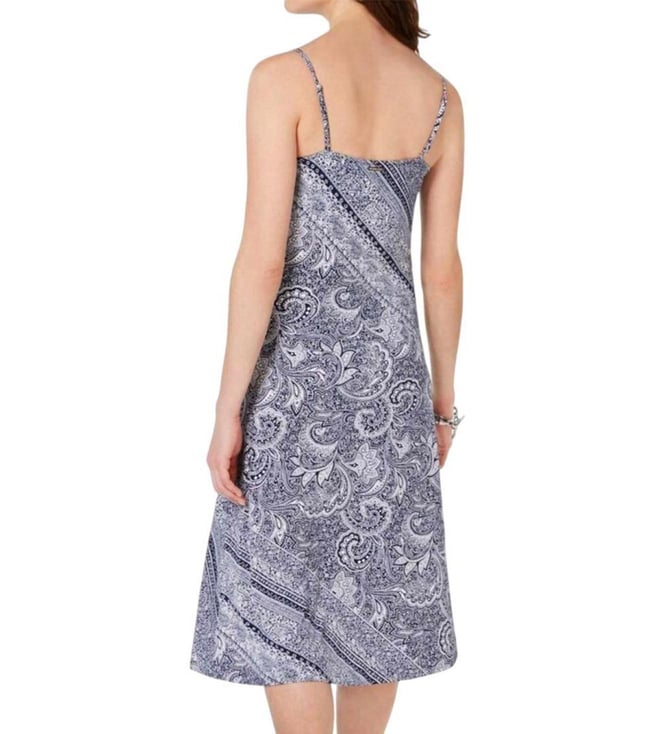 Adorn the modern look with this navy white v-neck printed dress from Michael Kors crafted in polyester/elastane featuring spaghetti strap, all-over paisley print, sleeveless, v-neck.