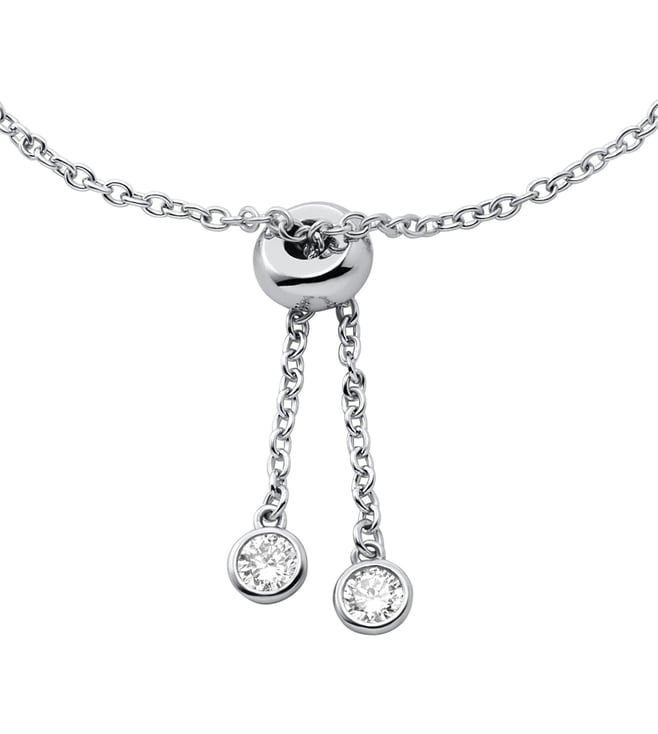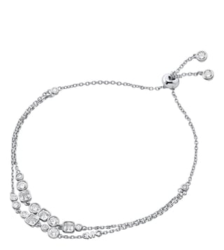 Elevate your style with the Michael Kors brilliance bracelet. Crafted in luxurious sterling silver with a rhodium finish, this bracelet exudes contemporary elegance featuring modern and unique mixed stone cuts. The double layer chain detail is designed with a slider closure making it perfect for everyday wear or special occasions. Designed for women who appreciate refined sophistication, this piece adds a touch of glamour to any outfit.