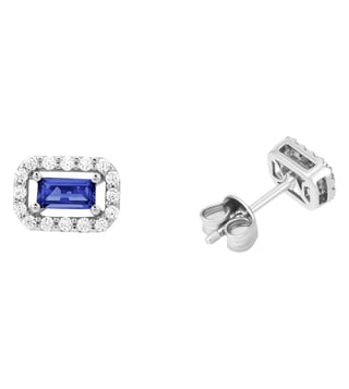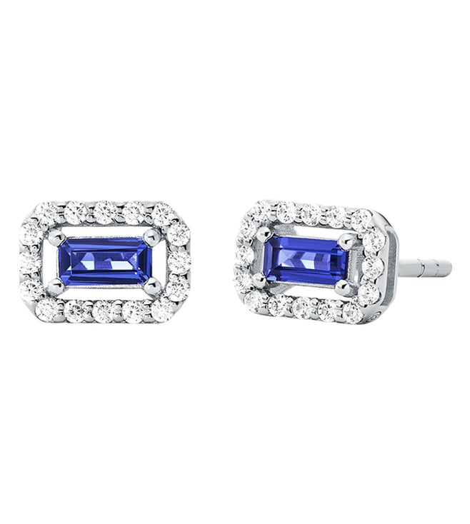 Elevate your everyday elegance with Kors Brilliance, your key to effortless luxury. Crafted from sterling silver and plated in rhodium, these emerald cut sapphire colored cubic zirconia earrings will elevate any look. Pair it with the matching necklace for a cohesive ensemble that radiates sophistication and style from every angle.