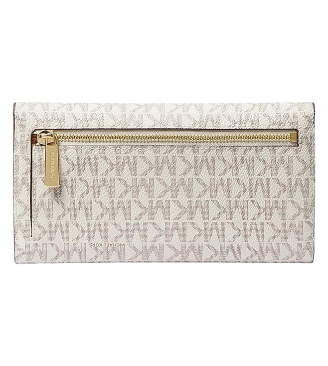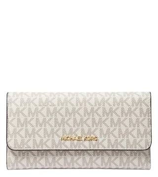 Accessorize perfectly with this white jet set trifold wallet by michael kors crafted in coated canvas and pvc featuring snap closure, id window, card slots, zip coin pocket, bill compartment, and logo detailing to give you luxe appeal. Products purchased from Darveys are supported exclusively by the warranty/exchange policies of Darveys and its partner boutiques. Brand owners and their channel partners are not responsible for exchange/warranty services for items purchased through Darveys.