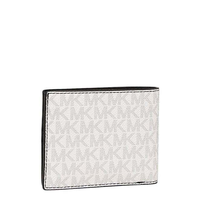 Accessorize perfectly with this white signature wallet by Michael Kors crafted in coated canvas, polyurethane and polyester featuring bill compartment, card slots, removable id window and logo detailing to give you luxe appeal. Products purchased from Darveys are supported exclusively by the warranty/exchange policies of Darveys and its partner boutiques. Brand owners and their channel partners are not responsible for exchange/warranty services for items purchased through Darveys.
